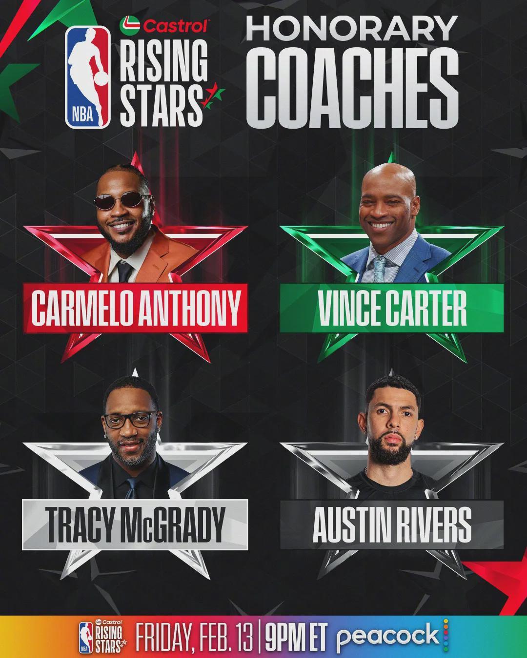 入选NBA全明星新秀赛的一年级球员,总共有10人,分别是弗拉格(独行侠)、克尼佩尔(黄蜂)、埃奇库姆(76人)、科沃德(灰熊)、奎因(鹈鹕)、特雷-约翰逊(奇才)、哈珀(马刺)、博伊尔斯(猛龙)、杰明(篮网)和费尔斯(鹈鹕)。